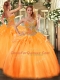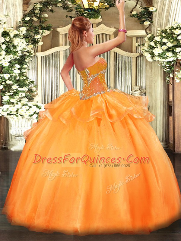 Customized Sleeveless Floor Length Beading Lace Up Quinceanera Gown with Orange