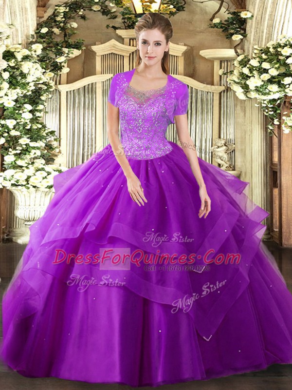 Dynamic Tulle Sleeveless Floor Length Sweet 16 Dress and Beading and Ruffles