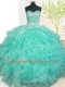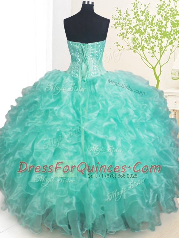 Exceptional Ball Gowns Vestidos de Quinceanera Turquoise Sweetheart Organza Sleeveless Floor Length Lace Up