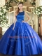Exquisite Blue Scoop Neckline Appliques Quinceanera Gown Sleeveless Lace Up