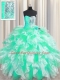Floor Length Lace Up Quinceanera Dresses Apple Green for Military Ball and Sweet 16 and Quinceanera with Beading and Ruffles