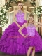 Free and Easy Purple Quinceanera Dress Sweet 16 and Quinceanera with Beading and Ruffles Halter Top Sleeveless Lace Up