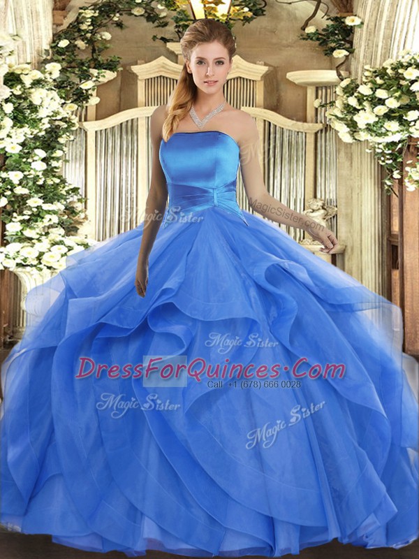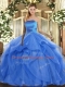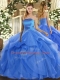 Lovely Blue Sleeveless Tulle Lace Up Ball Gown Prom Dress for Military Ball and Sweet 16 and Quinceanera