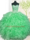 Romantic Apple Green Organza Lace Up Sweetheart Sleeveless Floor Length Ball Gown Prom Dress Beading and Ruffles and Pick Ups
