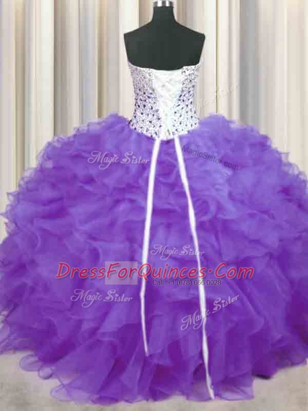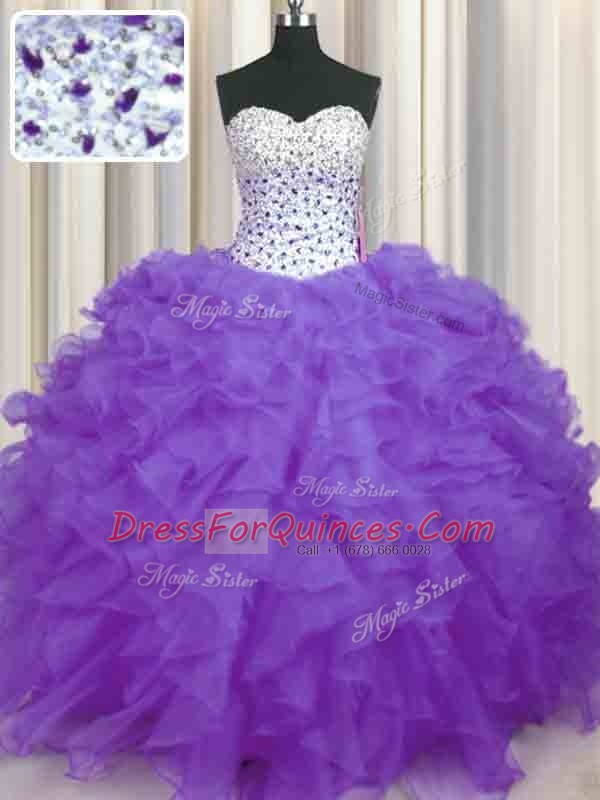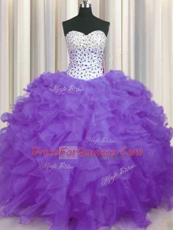 Sexy Sweetheart Sleeveless 15 Quinceanera Dress Floor Length Beading and Ruffles Lavender Organza