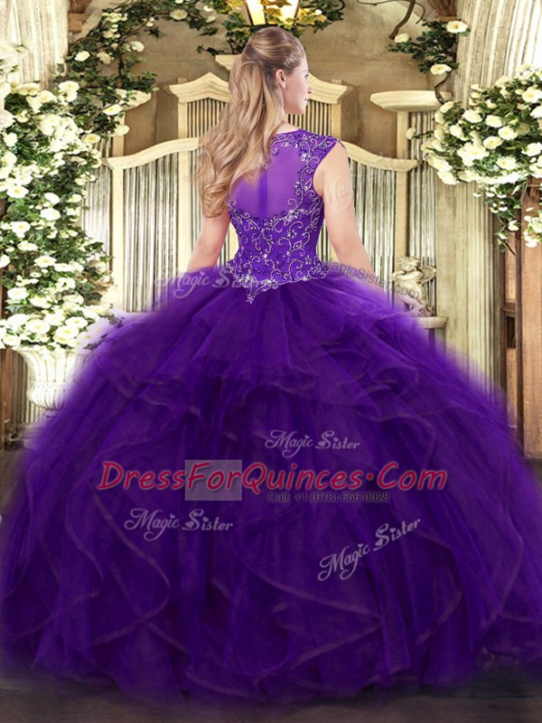 Sleeveless Beading and Ruffles Zipper Quinceanera Dress