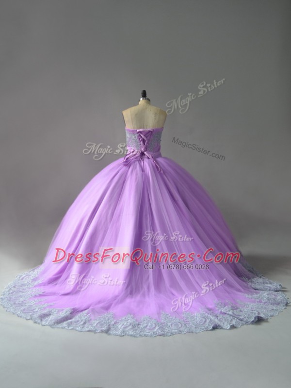 Sleeveless Court Train Lace Up Appliques Quinceanera Dresses