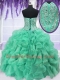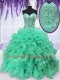 Sleeveless Organza Floor Length Lace Up Quinceanera Gown in Turquoise with Beading and Ruffles
