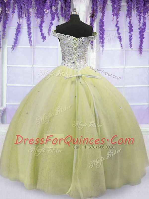 Spectacular Off the Shoulder Tulle Short Sleeves Floor Length Quinceanera Dresses and Beading