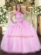 Unique Pink Ball Gowns Organza Scoop Sleeveless Beading Floor Length Zipper Quinceanera Gowns