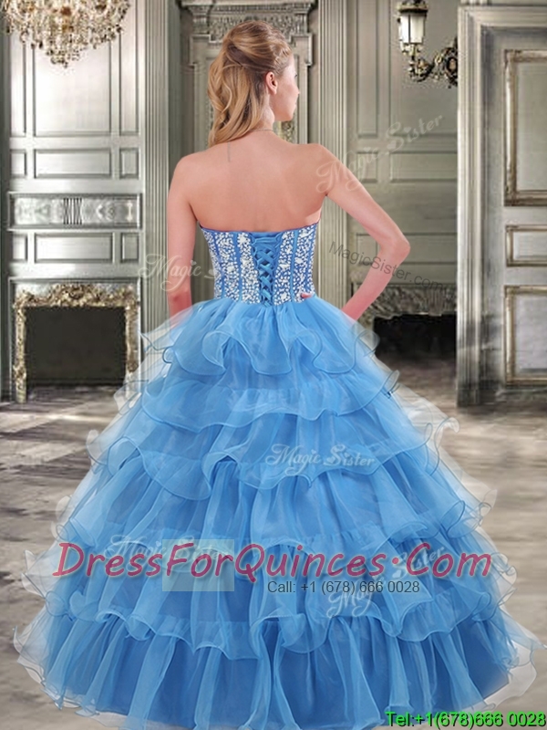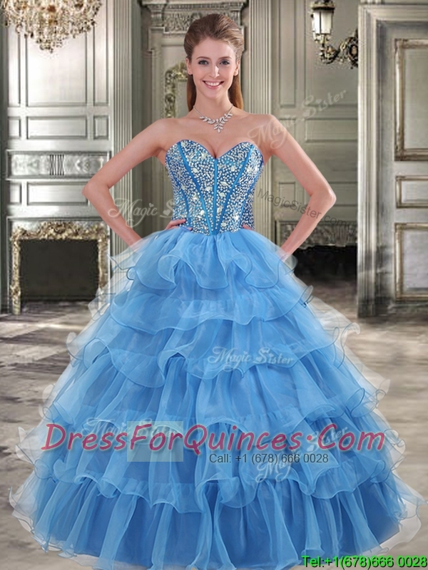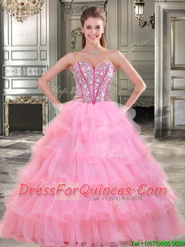 Wonderful Rose Pink Sweet 16 Dress with Beading and Ruffled Layers