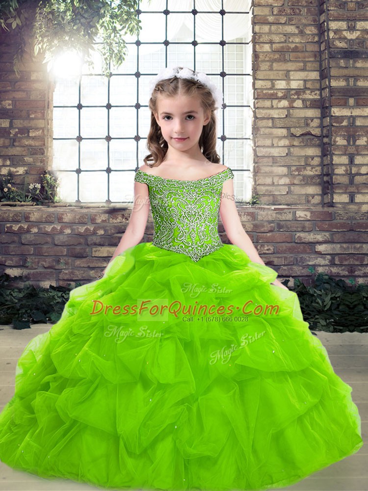 Amazing Floor Length Little Girl Pageant Gowns Off The Shoulder Sleeveless Lace Up