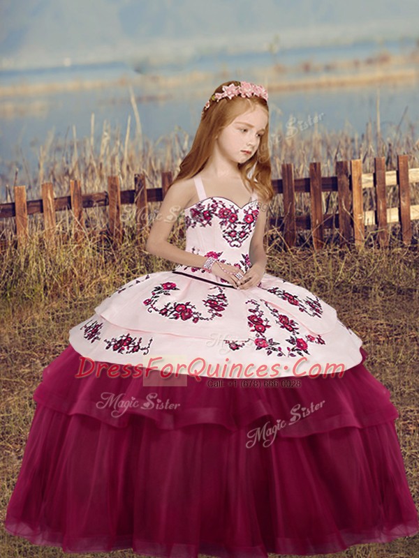 Amazing Straps Sleeveless Tulle Child Pageant Dress Embroidery Side Zipper