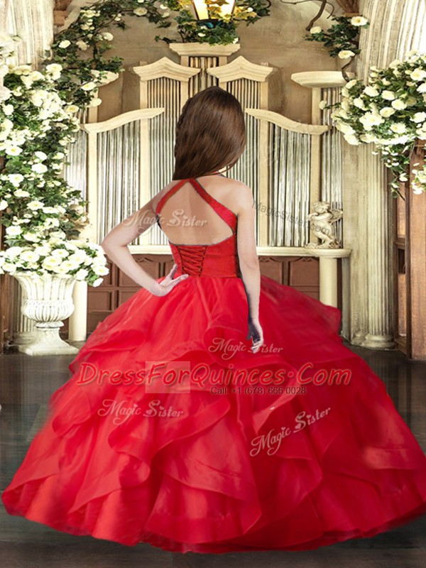 Custom Design Sleeveless Lace Up Floor Length Ruffles Pageant Gowns For Girls