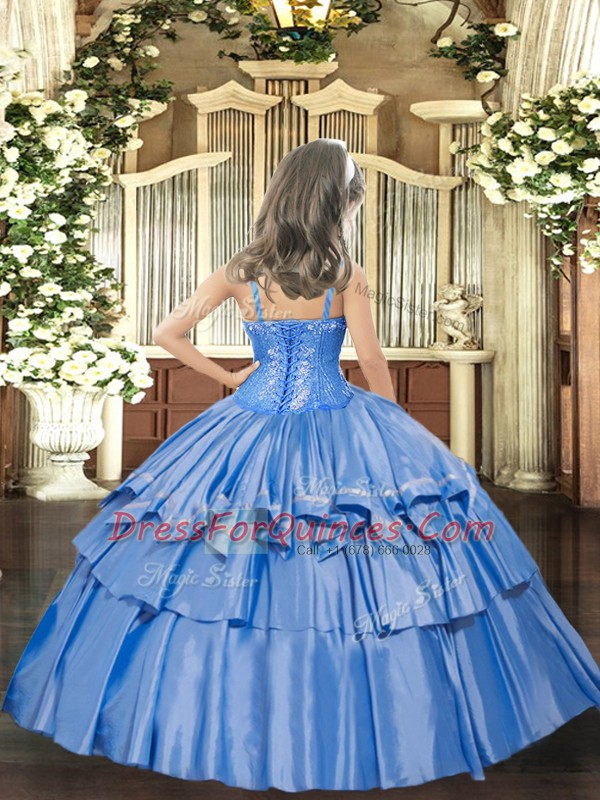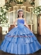 Custom Fit Baby Blue Sleeveless Floor Length Beading and Ruffled Layers Lace Up Child Pageant Dress