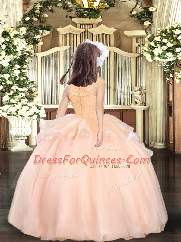 Customized Organza Sleeveless Floor Length Kids Formal Wear and Beading
