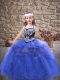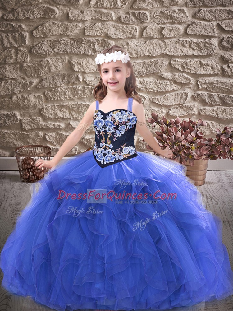 Customized Royal Blue Straps Lace Up Embroidery and Ruffles Child Pageant Dress Sleeveless