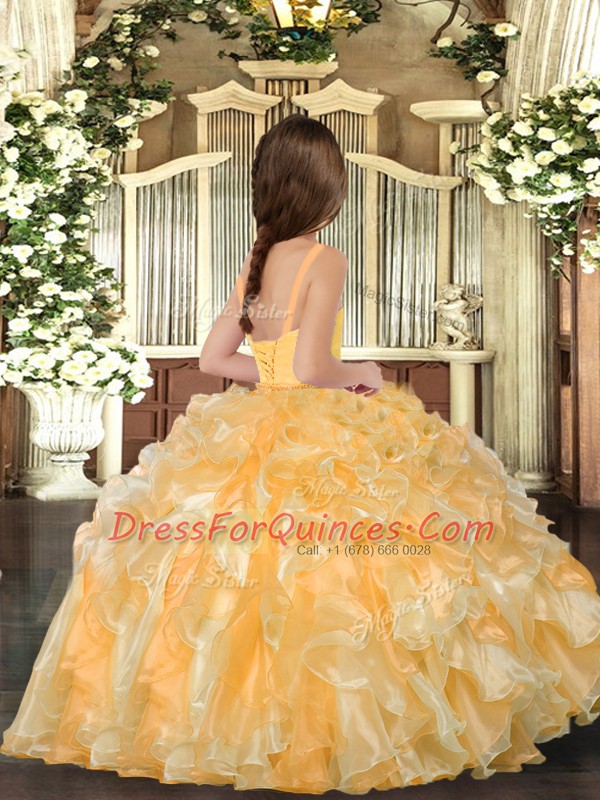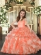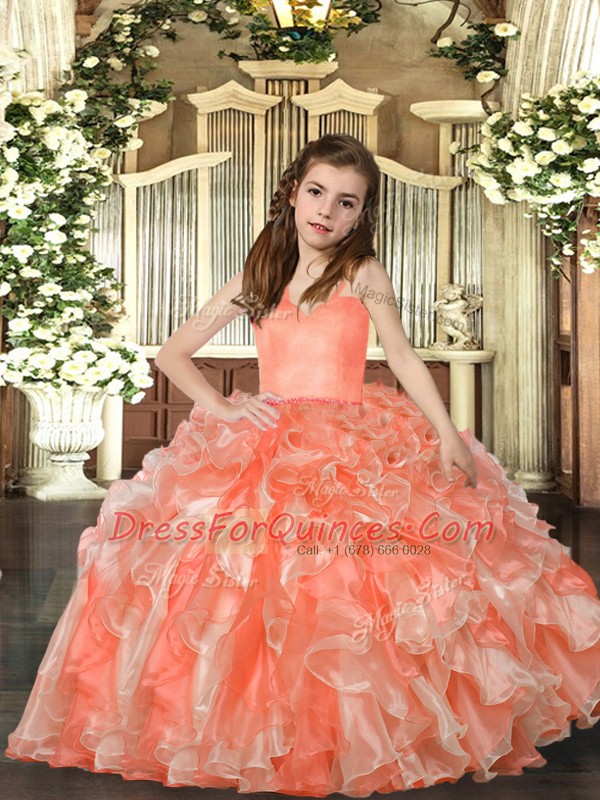 Dazzling Peach Sleeveless Ruffles Floor Length Little Girl Pageant Dress