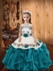 Embroidery and Ruffles Kids Pageant Dress Teal Lace Up Sleeveless Floor Length