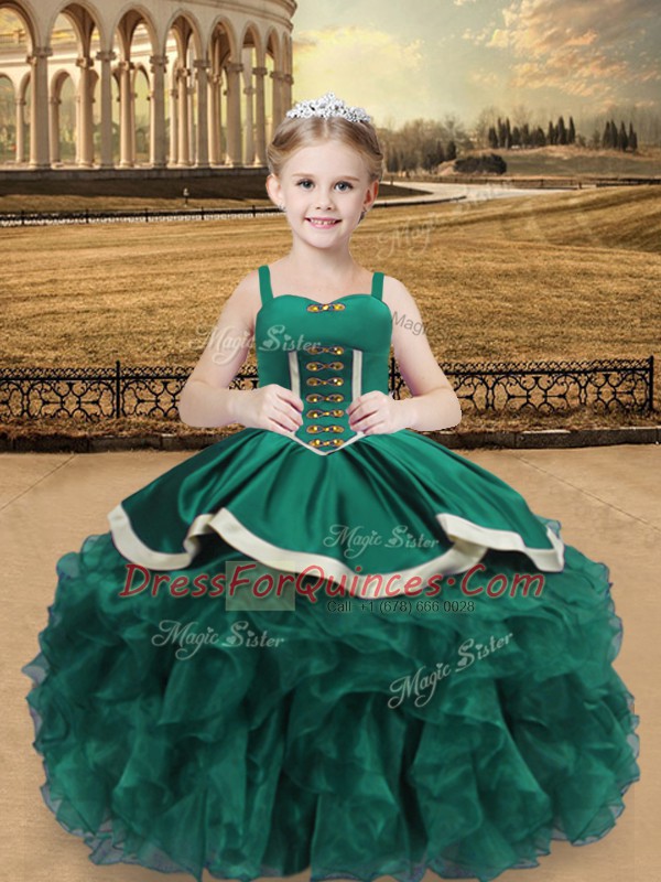 Floor Length Lace Up Pageant Gowns For Girls Turquoise for Sweet 16 and Quinceanera with Beading and Ruffles