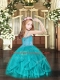 Hot Selling Ball Gowns Little Girl Pageant Dress Turquoise Spaghetti Straps Tulle Sleeveless Floor Length Lace Up