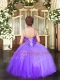 Lilac Lace Up Little Girl Pageant Dress Appliques Sleeveless Floor Length