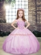 Lilac Straps Neckline Beading Girls Pageant Dresses Sleeveless Lace Up