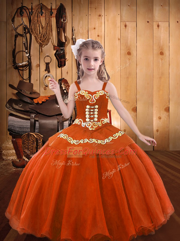 Orange Red Sleeveless Organza Lace Up Little Girl Pageant Gowns for Sweet 16 and Quinceanera