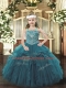 Organza Straps Sleeveless Lace Up Beading and Ruffles Little Girl Pageant Dress in Teal