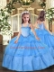 Perfect Baby Blue Ball Gowns Straps Sleeveless Organza Floor Length Lace Up Appliques Little Girls Pageant Dress Wholesale