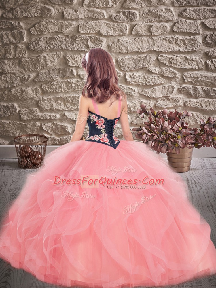 Top Selling Rust Red Ball Gowns Embroidery and Ruffles Kids Pageant Dress Lace Up Tulle Sleeveless Floor Length