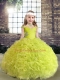 Trendy Fabric With Rolling Flowers Straps Sleeveless Lace Up Beading and Ruffles Girls Pageant Dresses in Yellow Green