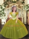 Trendy Olive Green Tulle Lace Up Straps Sleeveless Floor Length Kids Pageant Dress Beading