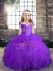 Tulle Sleeveless Floor Length Little Girls Pageant Gowns and Beading and Ruffles