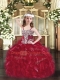 Wine Red Organza Lace Up Little Girl Pageant Dress Sleeveless Floor Length Appliques and Ruffles