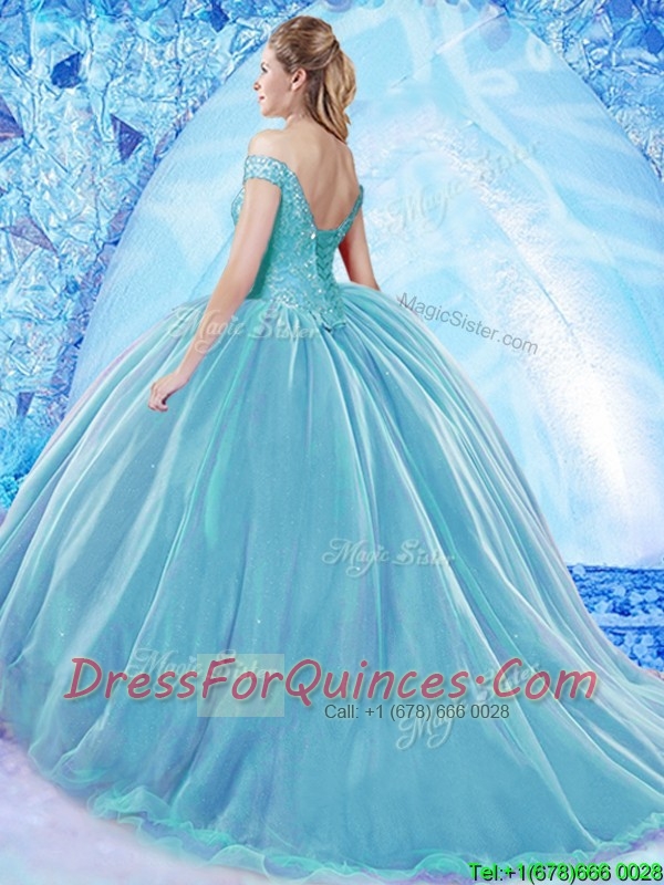 2017 Beautiful Beaded Bodice Organza Quinceanera Dress with Brush Train