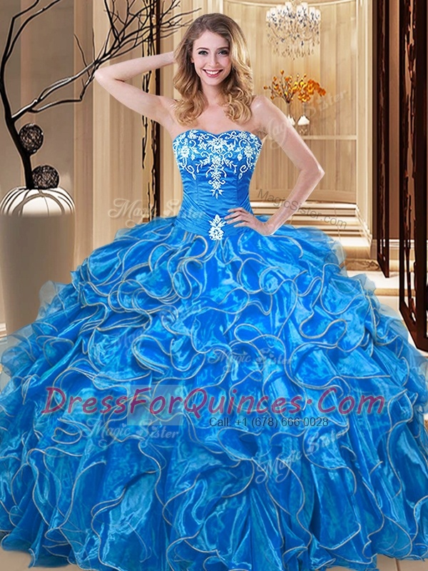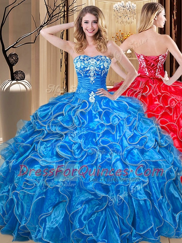 Attractive Floor Length Blue 15th Birthday Dress Sweetheart Sleeveless Lace Up