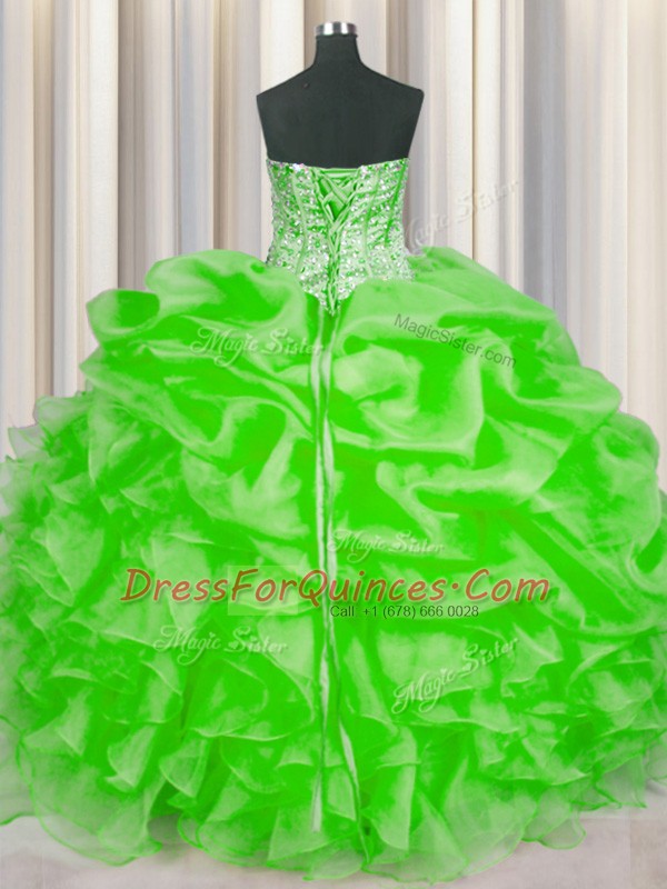 Attractive Lace Up Sweetheart Beading and Ruffles and Pick Ups Sweet 16 Dresses Organza Sleeveless