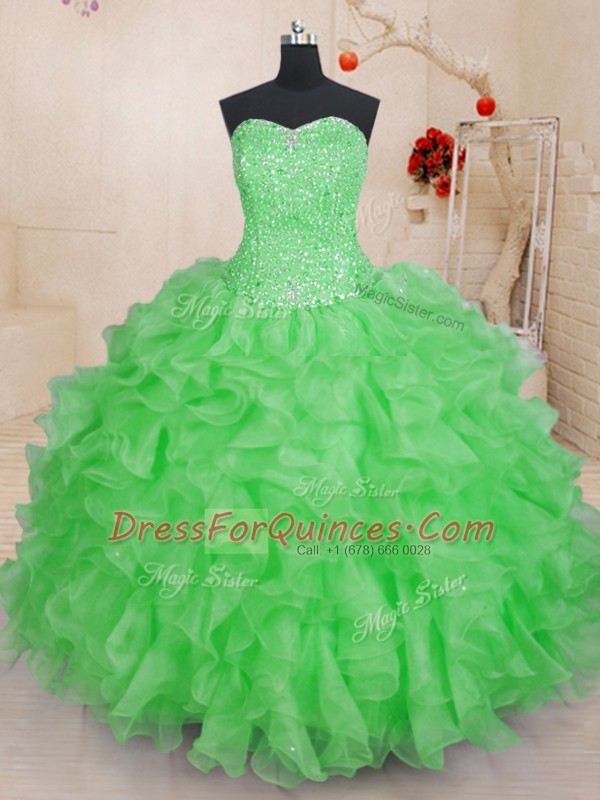 Ball Gowns Quinceanera Dress Sweetheart Organza Sleeveless Floor Length Lace Up