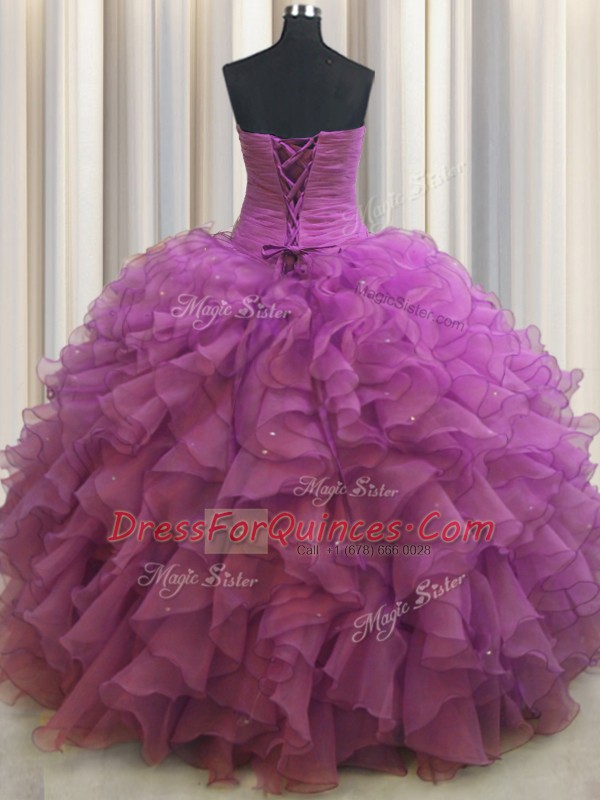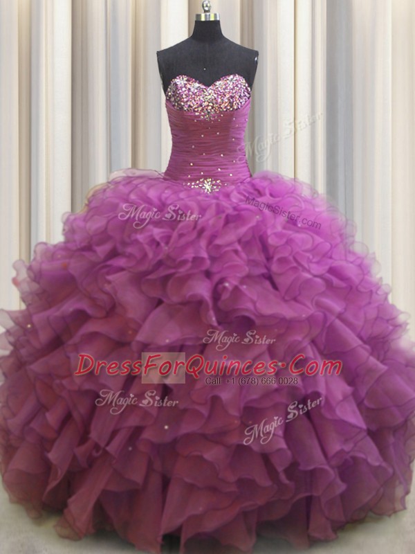 Beaded Bust Floor Length Ball Gowns Sleeveless Fuchsia 15th Birthday Dress Lace Up