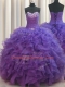 Beaded Bust Purple Ball Gowns Organza Sweetheart Sleeveless Beading and Ruffles Floor Length Lace Up Sweet 16 Dress