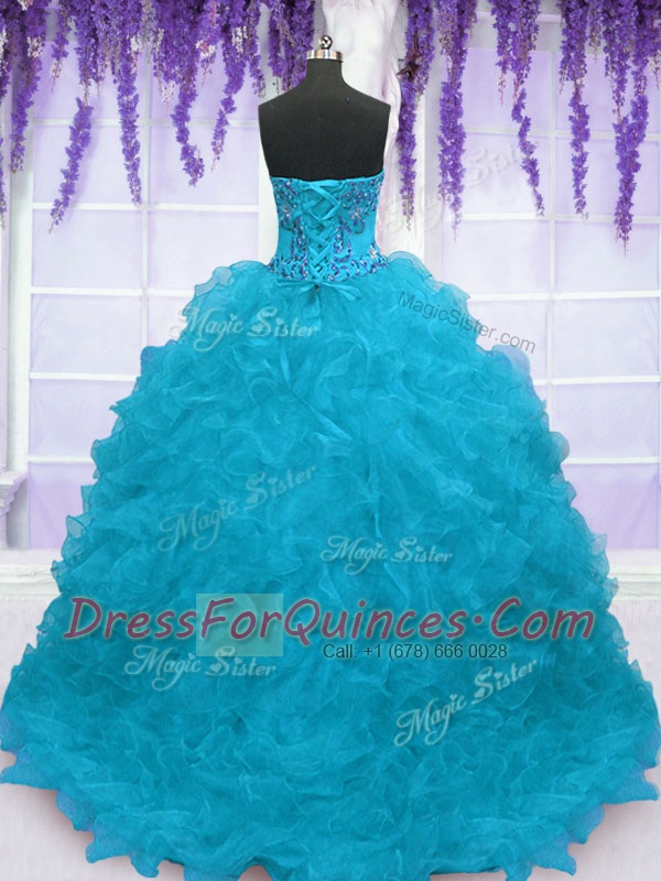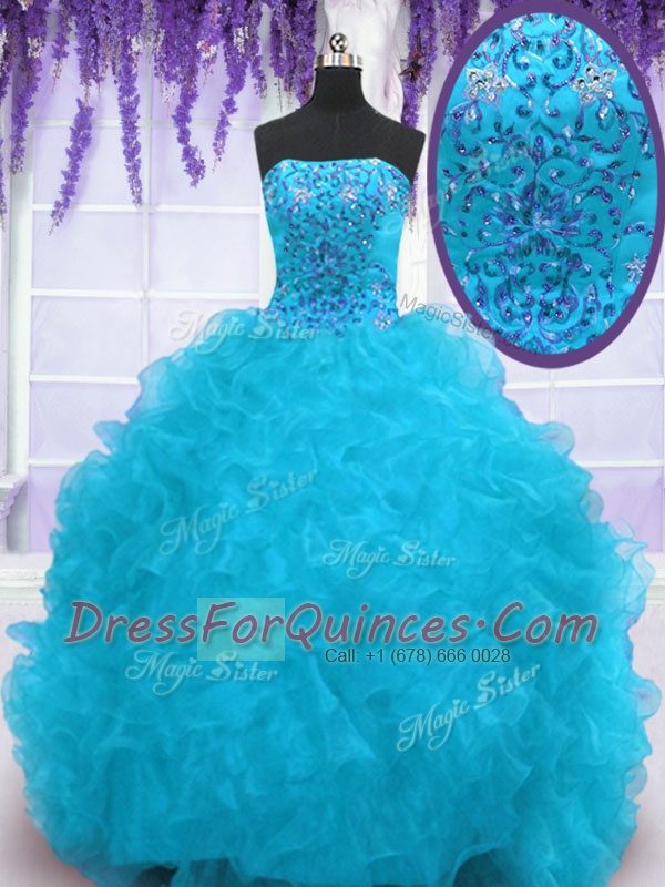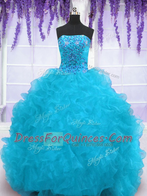 Beading and Ruffles Sweet 16 Quinceanera Dress Aqua Blue Lace Up Sleeveless With Brush Train