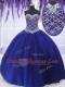 Beading Sweet 16 Quinceanera Dress Royal Blue Lace Up Sleeveless Floor Length