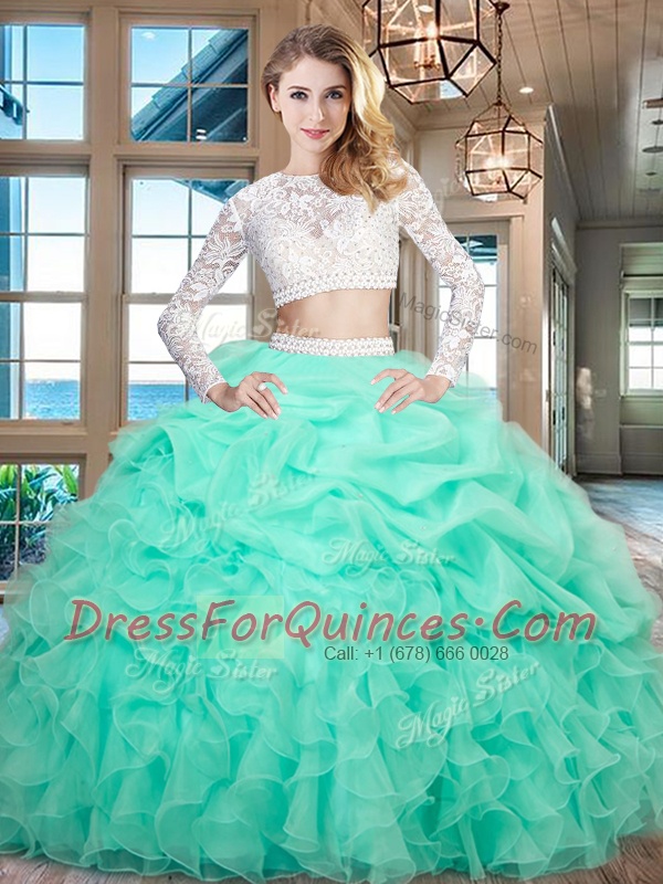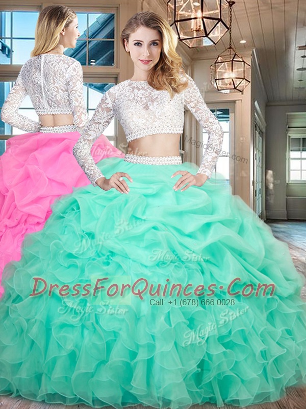 Best Selling Scoop Long Sleeves Organza Vestidos de Quinceanera Beading and Lace and Ruffles Zipper