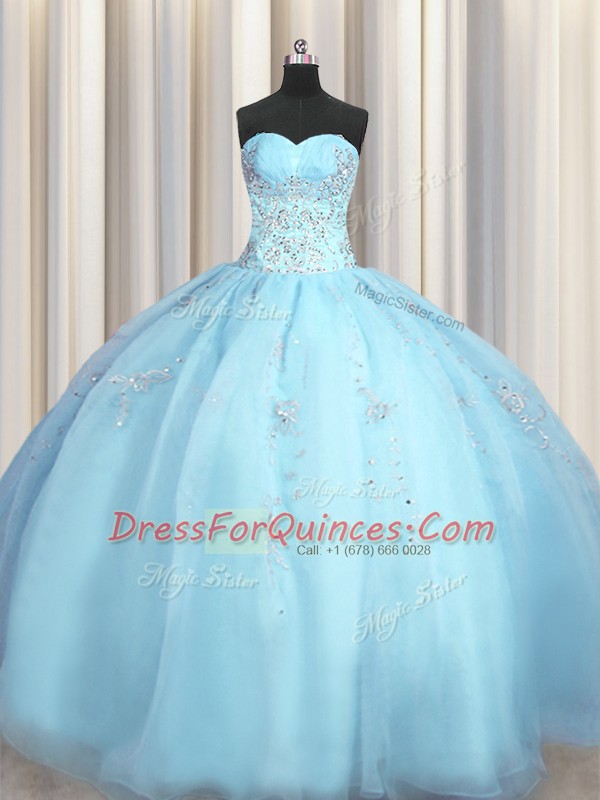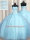 Big Puffy Sleeveless Floor Length Beading and Appliques Zipper 15 Quinceanera Dress with Baby Blue