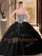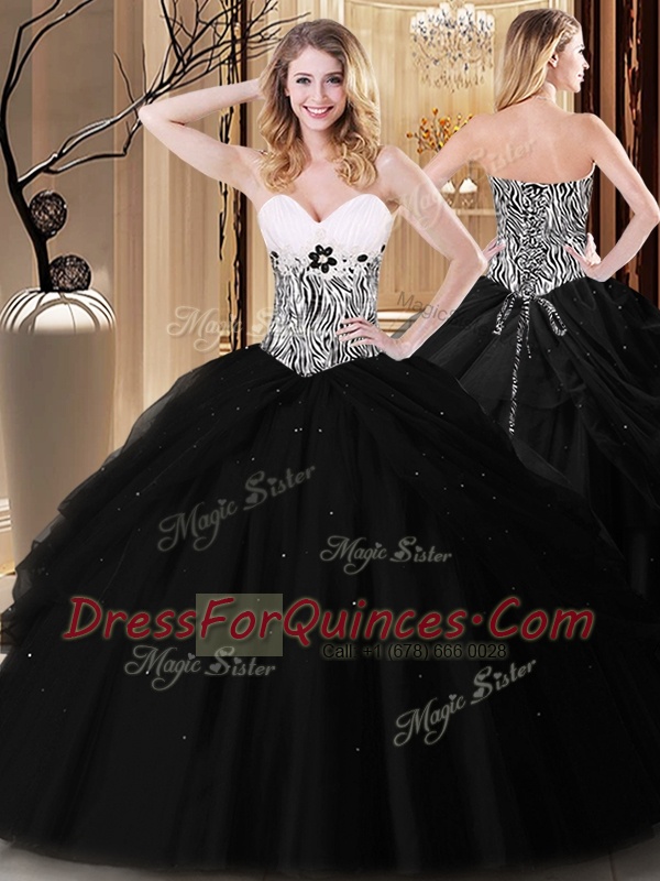 Black Ball Gowns Sweetheart Sleeveless Tulle Floor Length Lace Up Pick Ups and Pattern Vestidos de Quinceanera