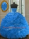 Blue Ball Gowns Beading and Ruffles and Pick Ups Quince Ball Gowns Lace Up Organza Sleeveless Floor Length