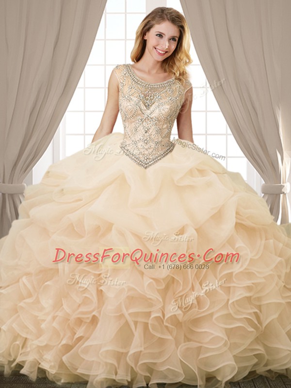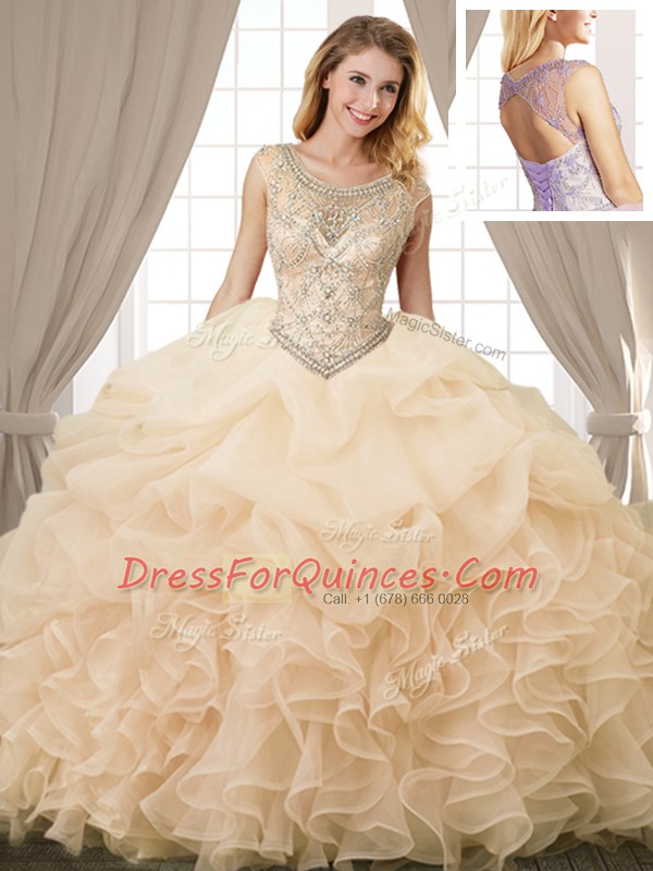 Captivating Scoop Sleeveless Lace Up Floor Length Beading and Ruffles and Pick Ups Sweet 16 Quinceanera Dress
