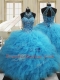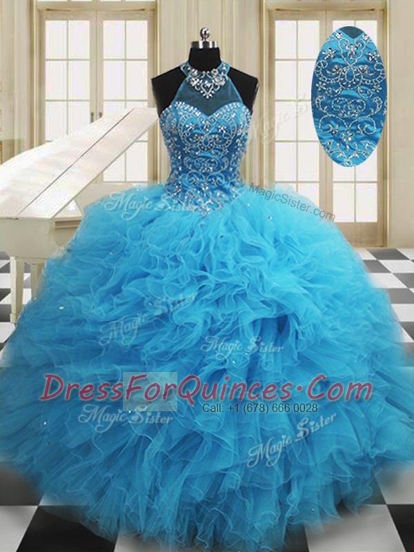 Colorful Scoop Sleeveless Lace Up Vestidos de Quinceanera Baby Blue Tulle