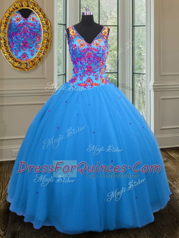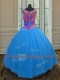 Comfortable Blue Tulle Zipper Straps Sleeveless Floor Length Quinceanera Gowns Beading and Sequins